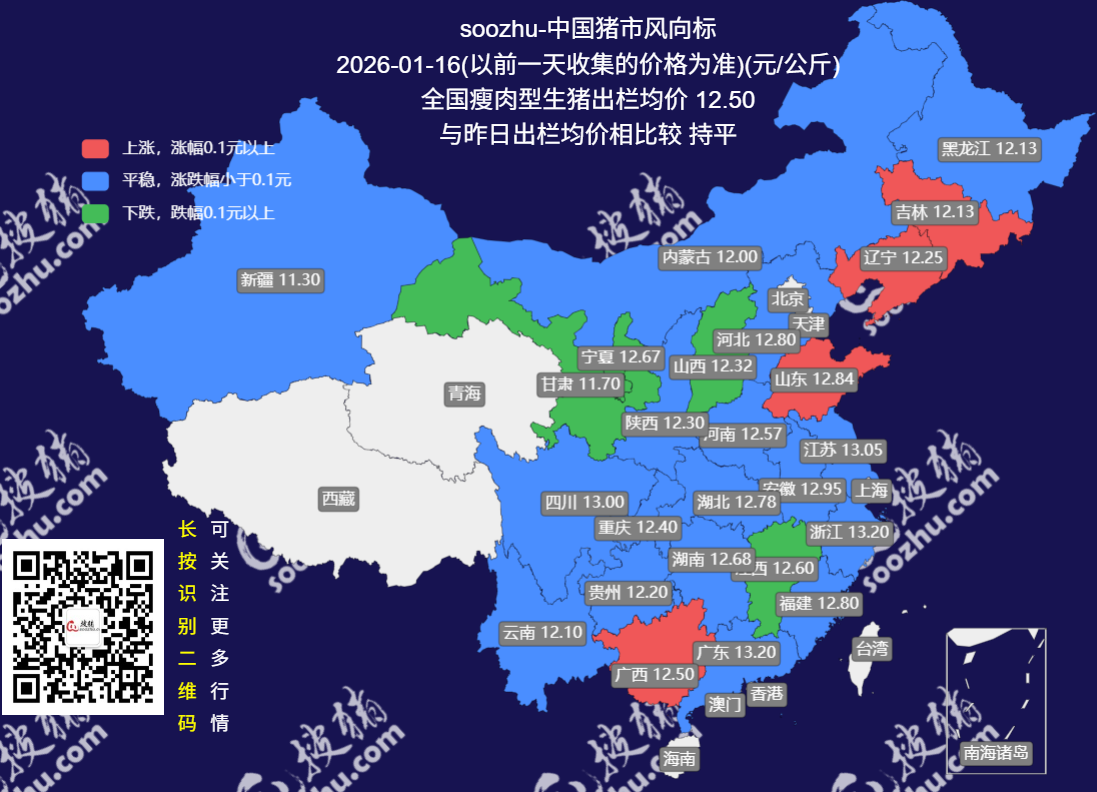 今日全国瘦肉型猪出栏均价12.5元/公斤,与昨日持平[详情]