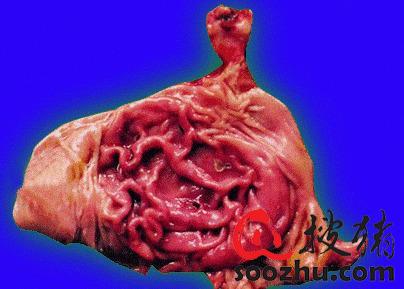 (3)因发生霉菌感染所导致的胃溃疡,尤其是小猪更加易发。