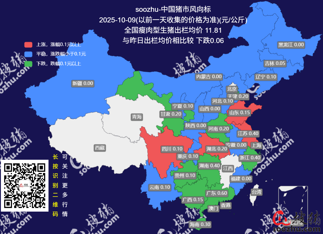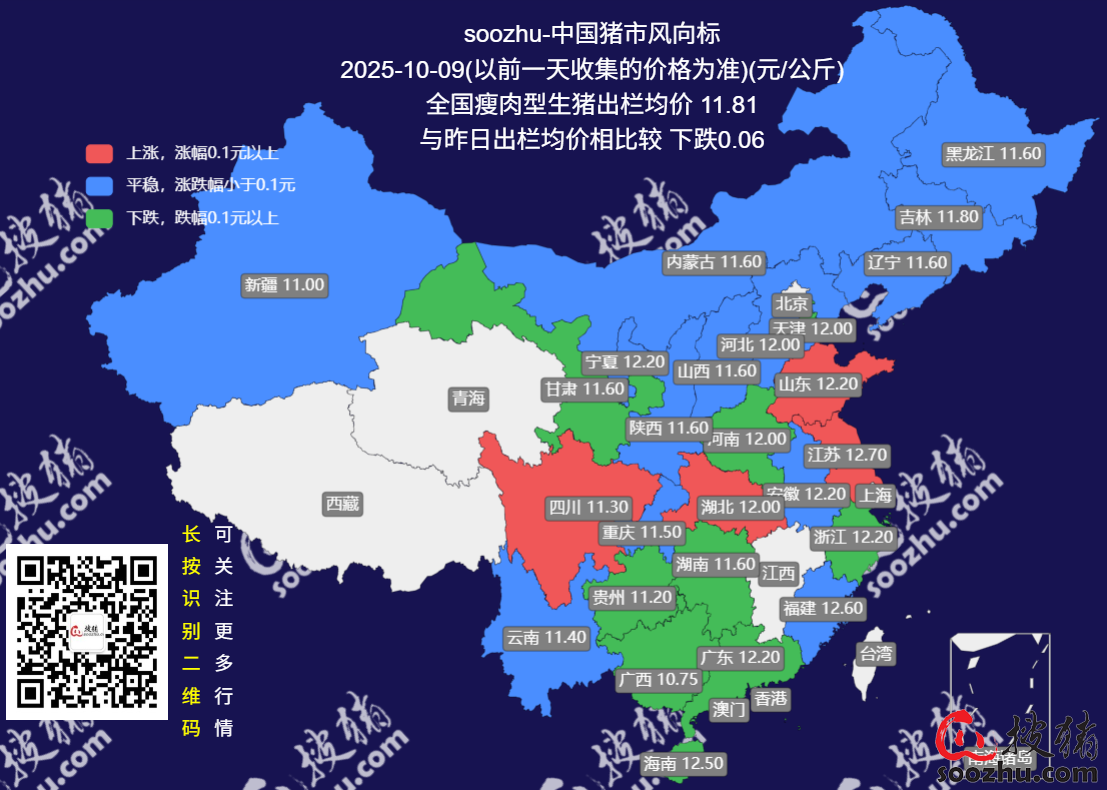 10月9日评:今日全国瘦肉型猪出栏均价11.81元/公斤