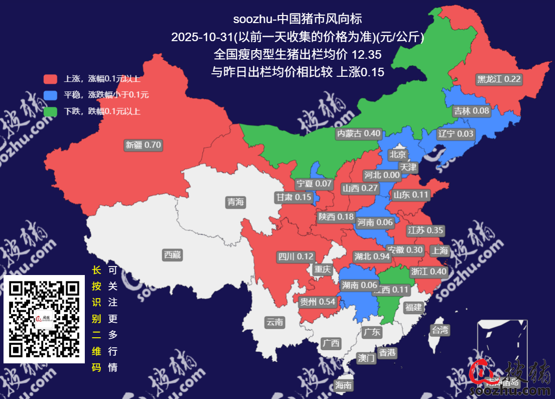 10月31日评:今日全国瘦肉型猪出栏均价12.35元/公斤