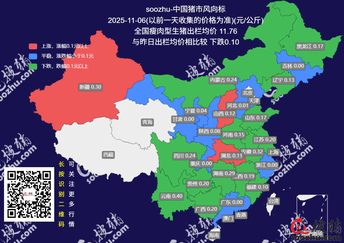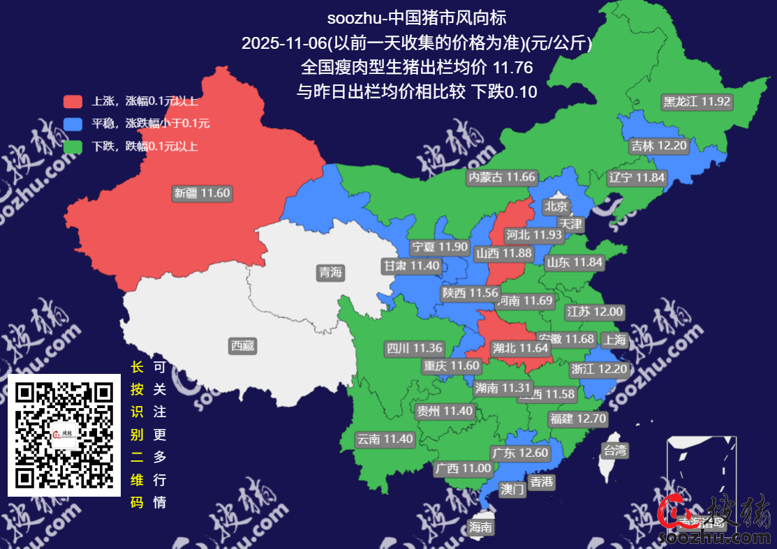 11月6日评:今日全国瘦肉型猪出栏均价11.76元/公斤