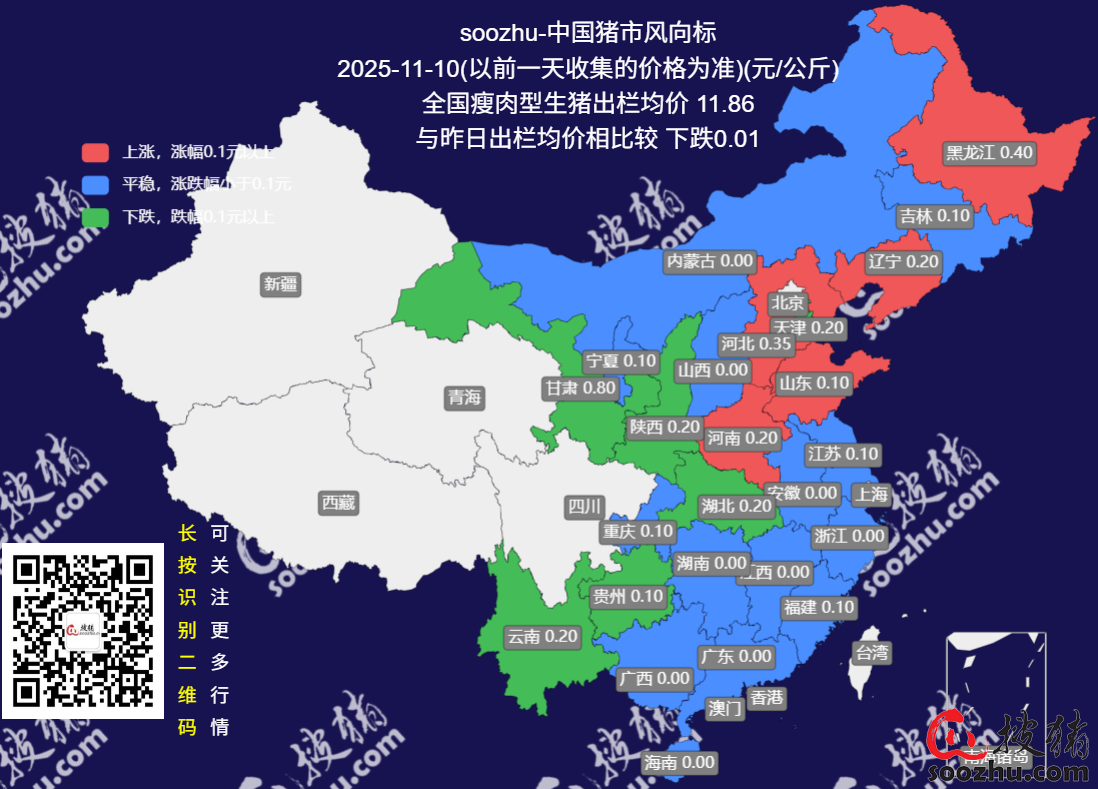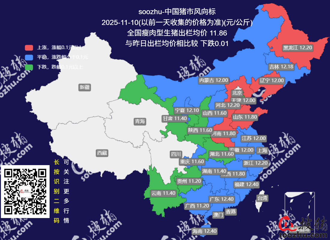 11月10日评:今日全国瘦肉型猪出栏均价11.86元/公斤