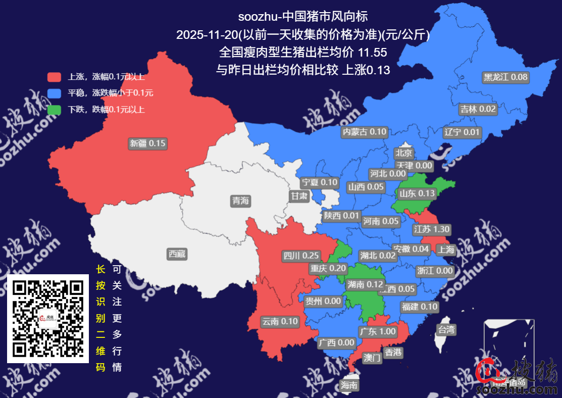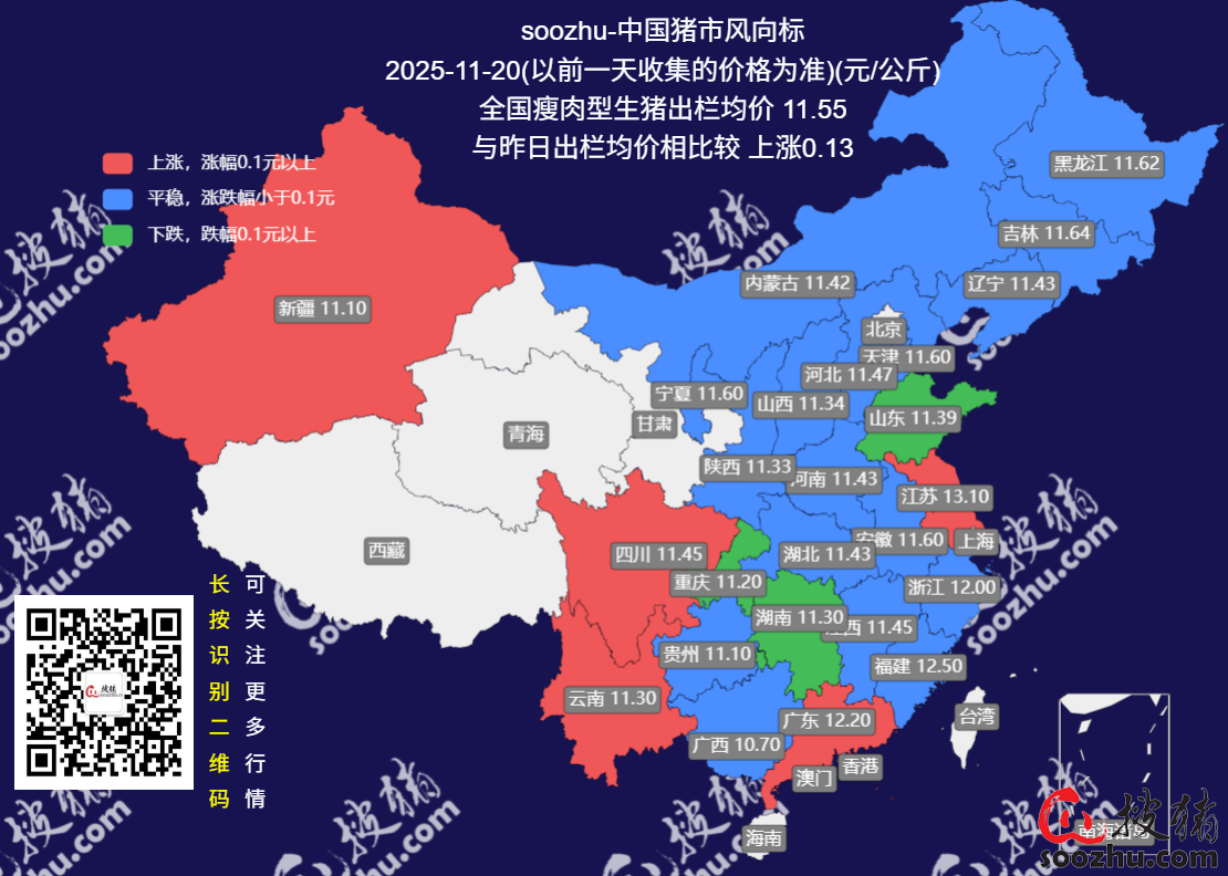 11月20日评:今日全国瘦肉型猪出栏均价11.55元/公斤