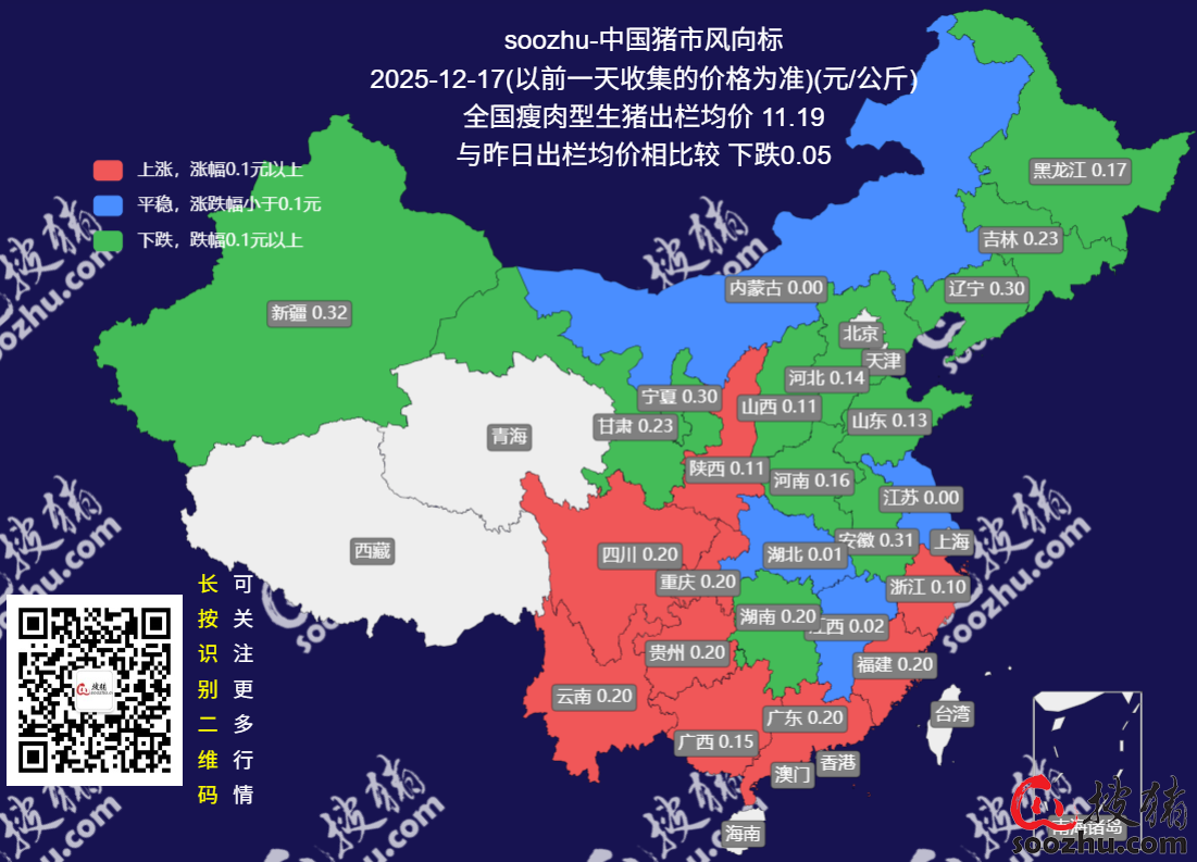 12月17日评:今日全国瘦肉型猪出栏均价11.19元/公斤