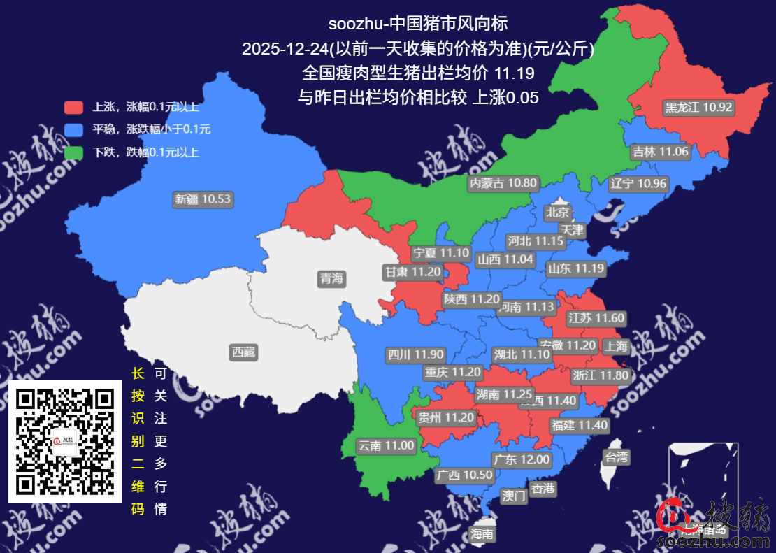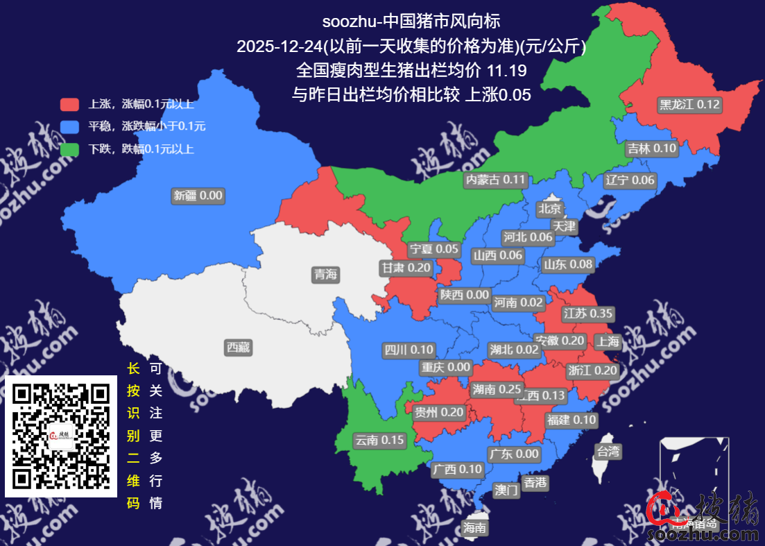 12月24日评:今日全国瘦肉型猪出栏均价11.19元/公斤