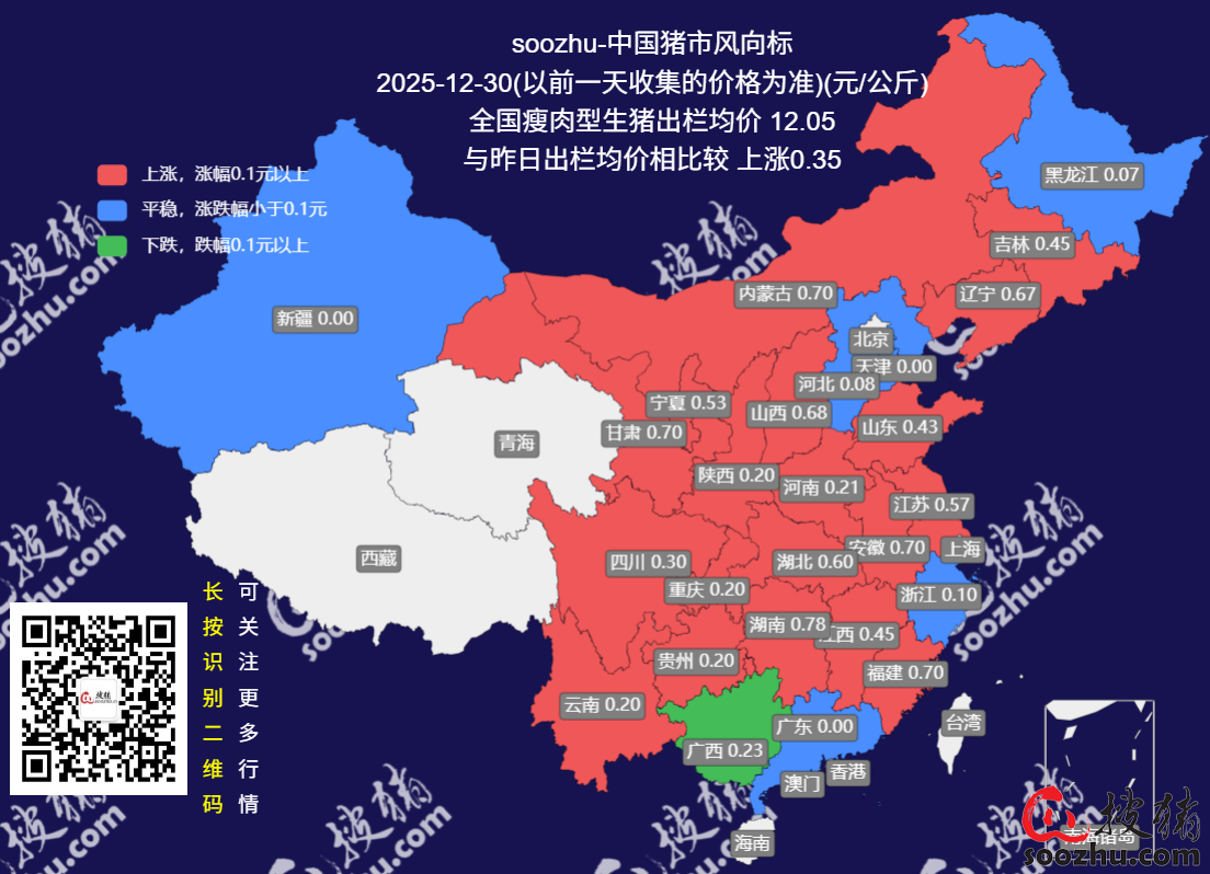 12月30日评:今日全国瘦肉型猪出栏均价12.05元/公斤