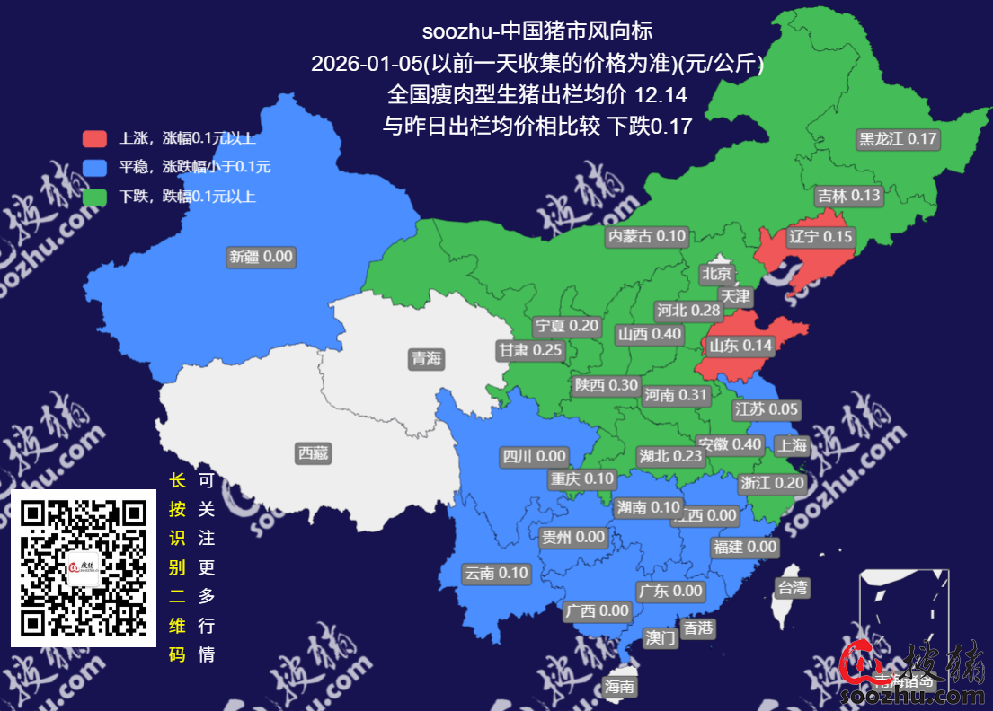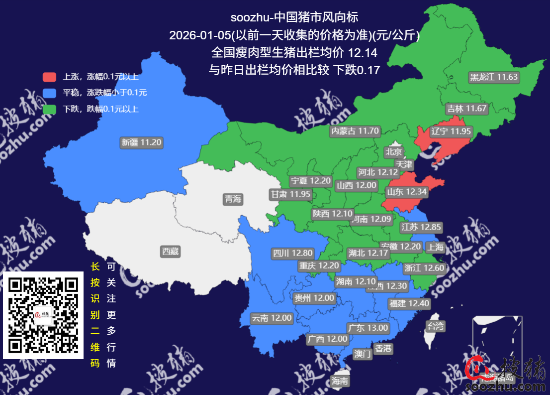 1月5日评:今日全国瘦肉型猪出栏均价12.14元/公斤