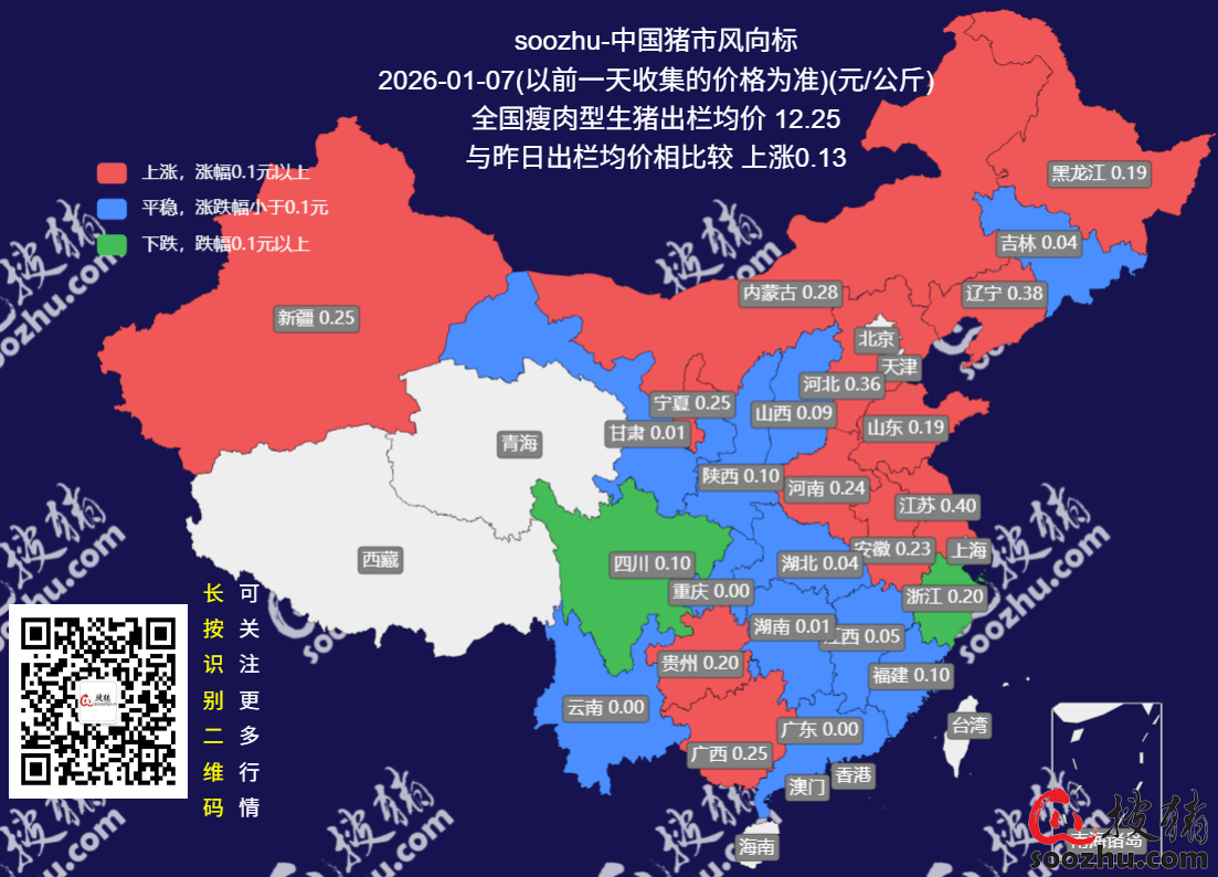 1月7日评:今日全国瘦肉型猪出栏均价12.25元/公斤