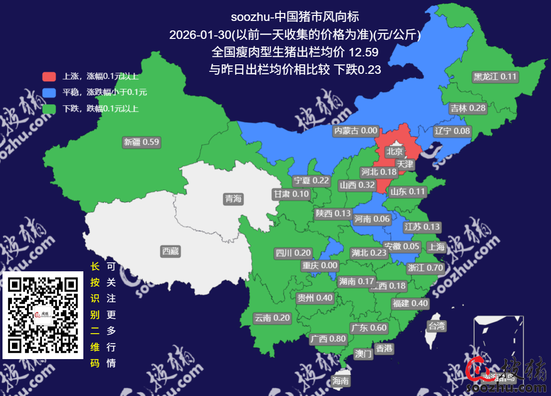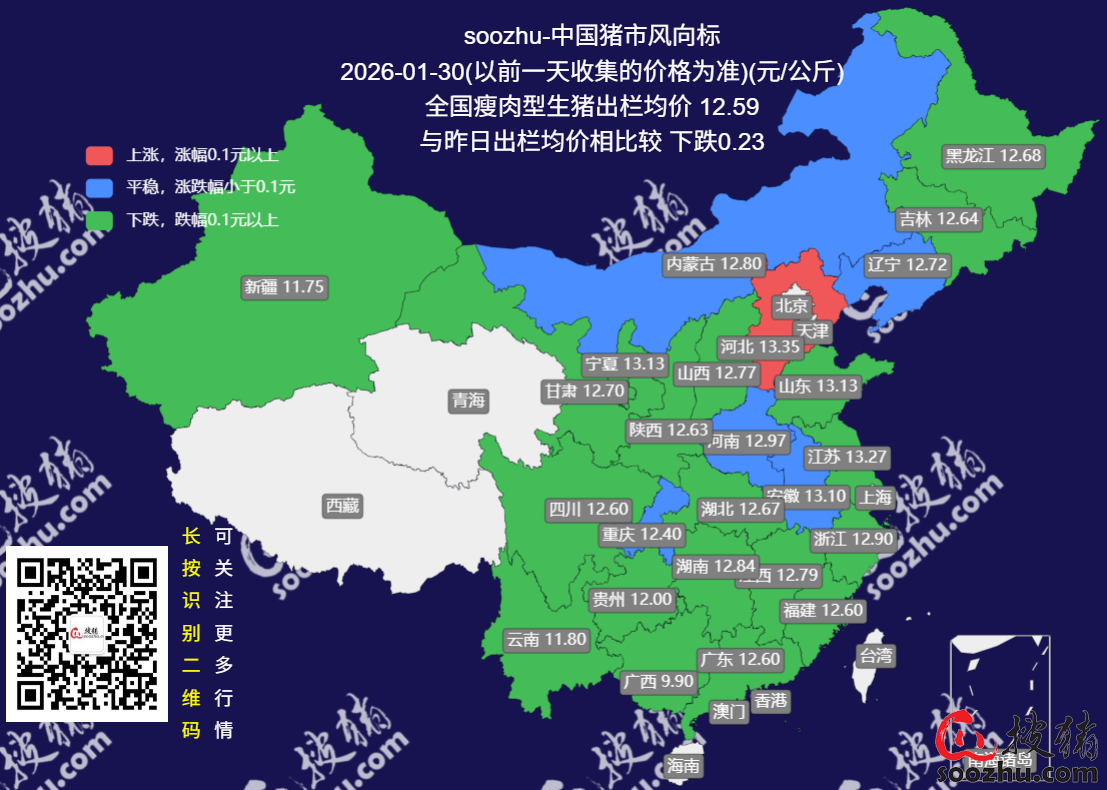 1月30日评:今日全国瘦肉型猪出栏均价12.59元/公斤