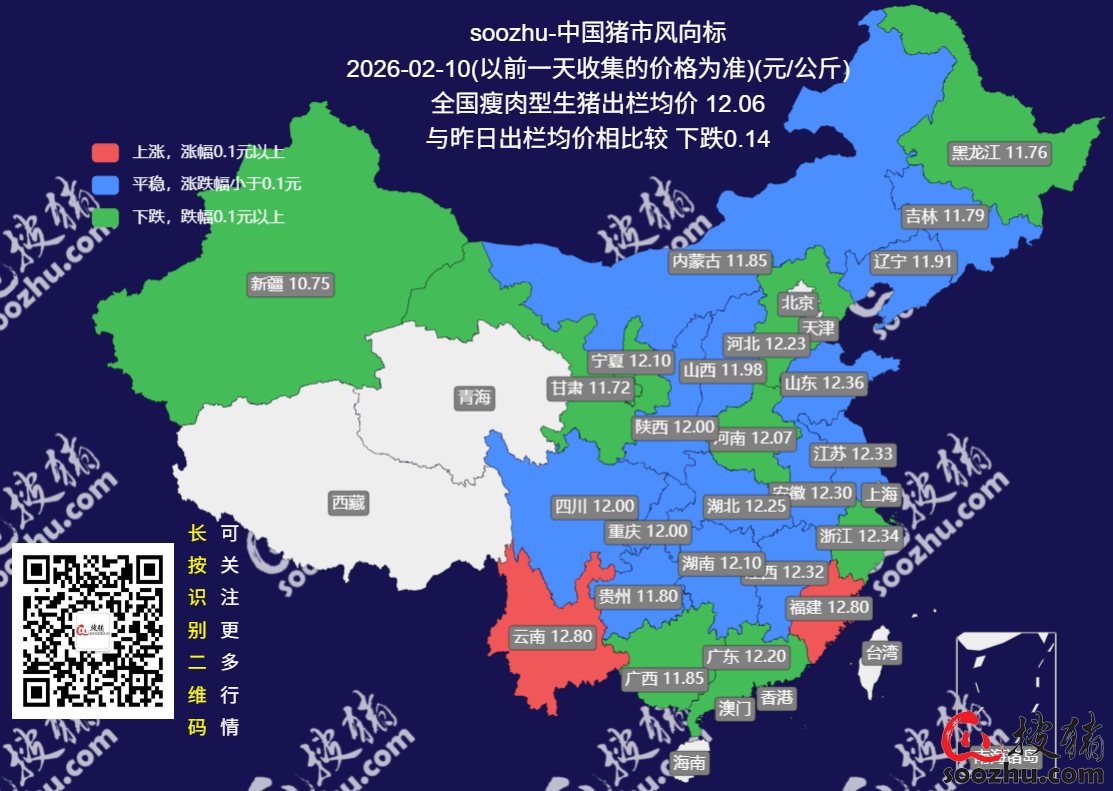 2月10日评:今日全国瘦肉型猪出栏均价12.06元/公斤