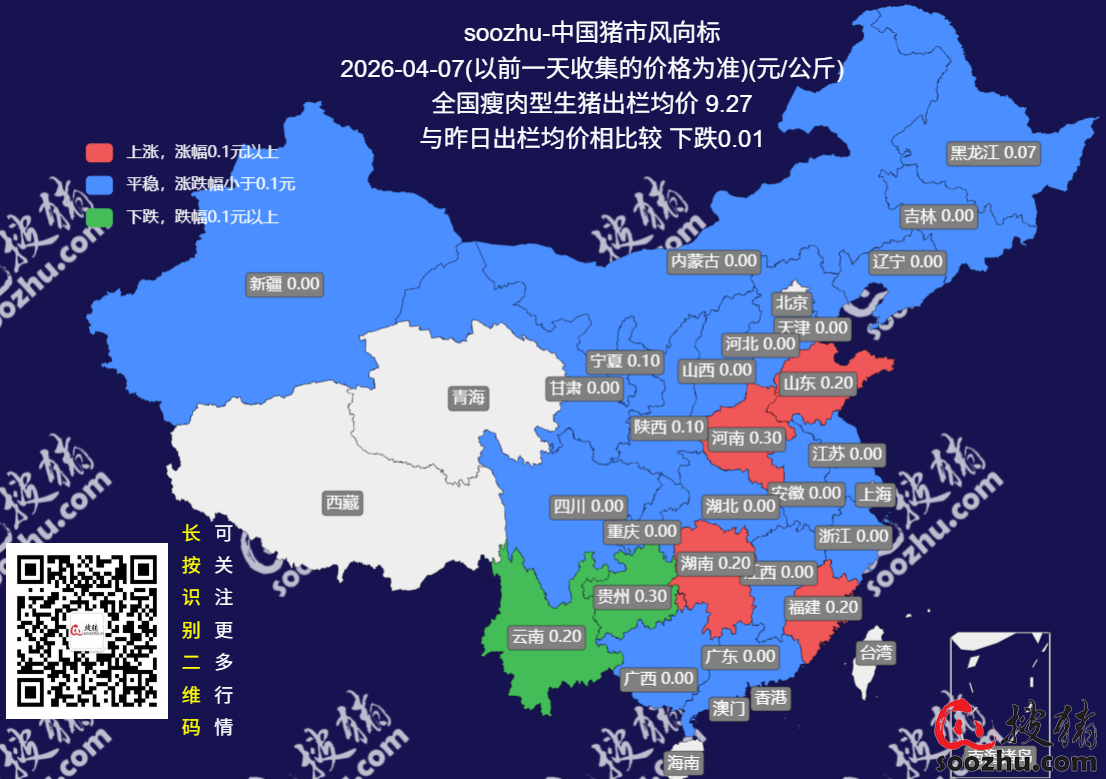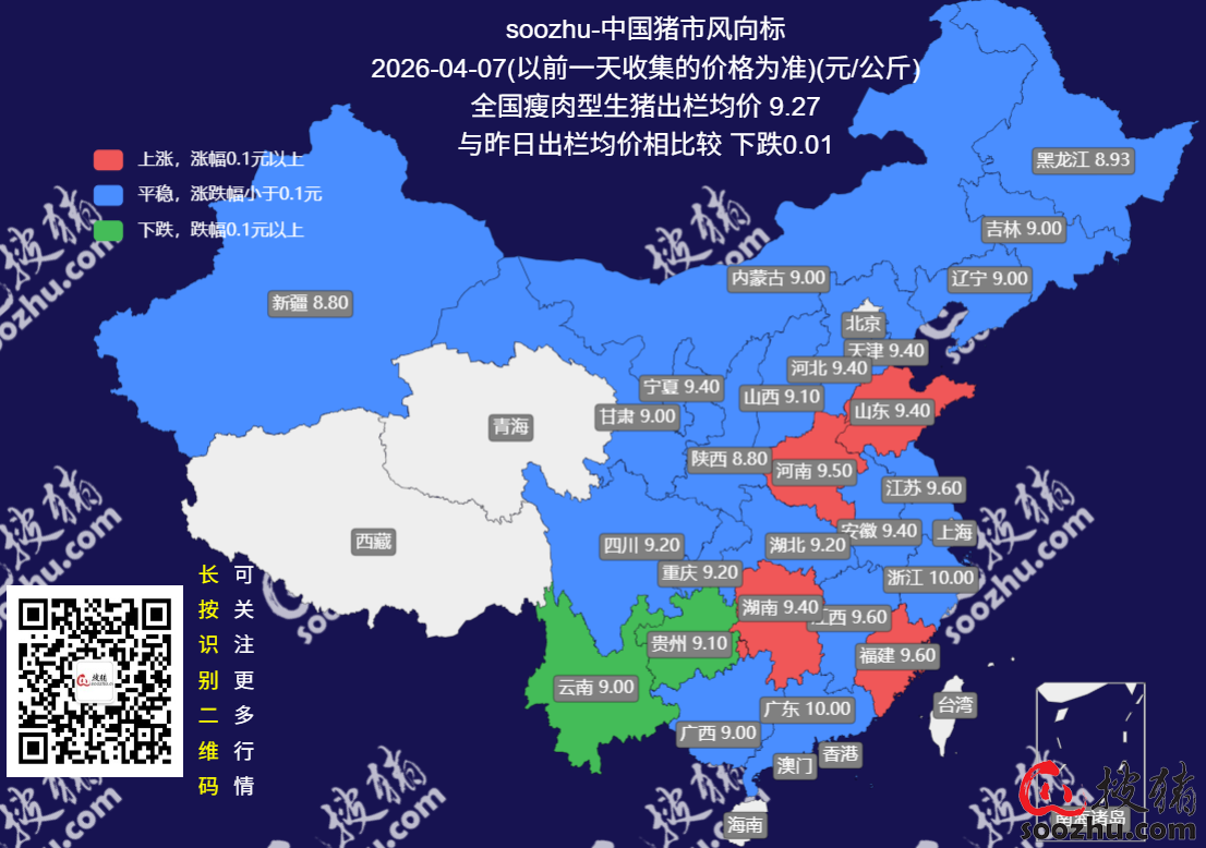 4月7日评:今日全国瘦肉型猪出栏均价9.27元/公斤