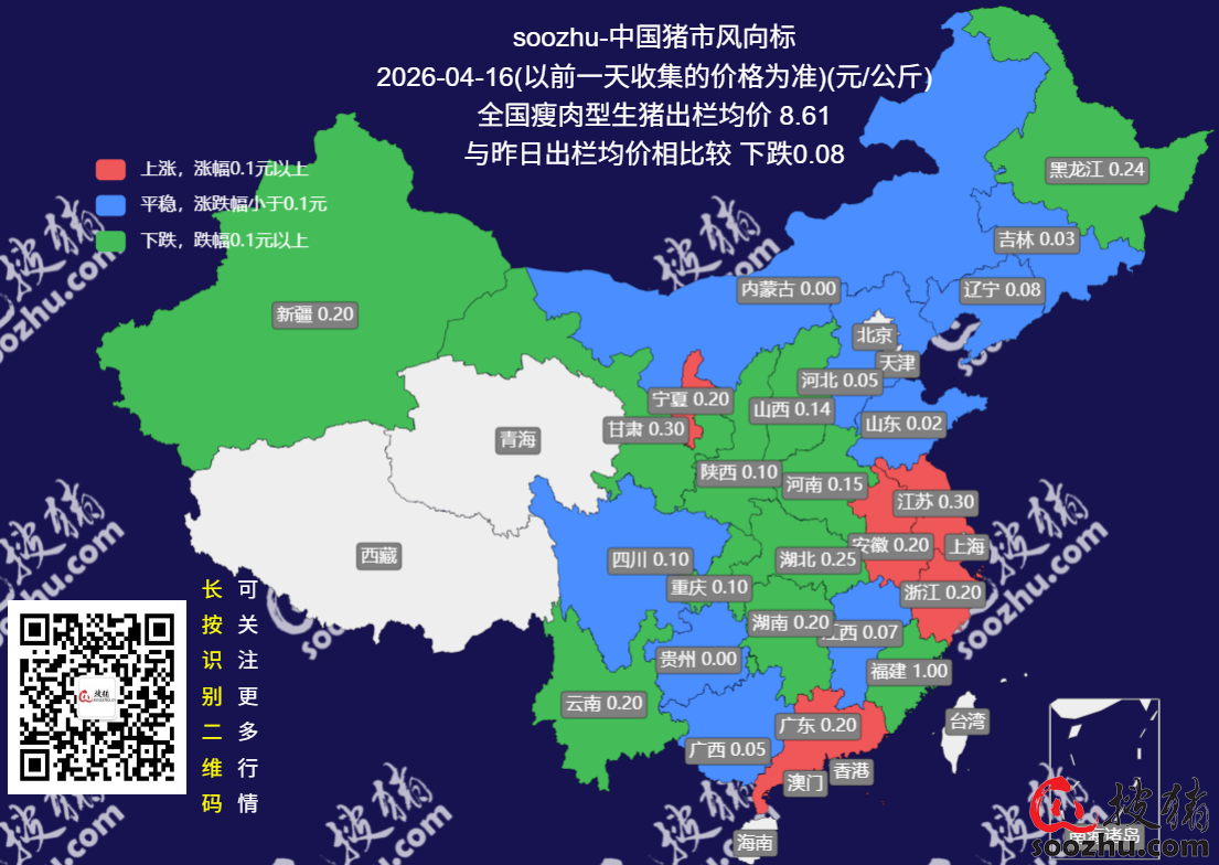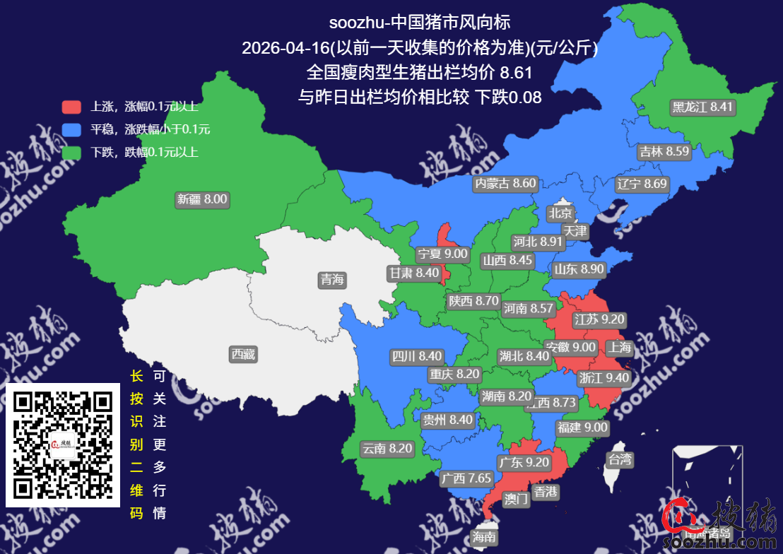 4月16日评:今日全国瘦肉型猪出栏均价8.61元/公斤