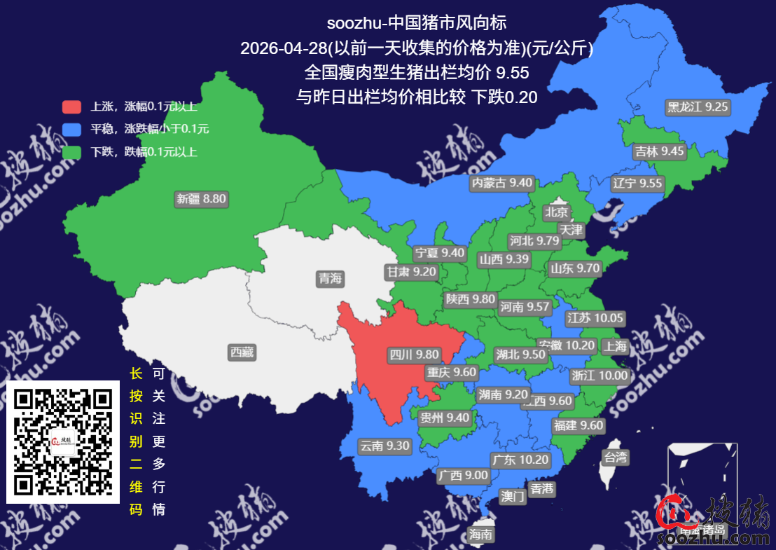 4月28日生猪日报:今日全国瘦肉型猪出栏均价9.55元/公斤