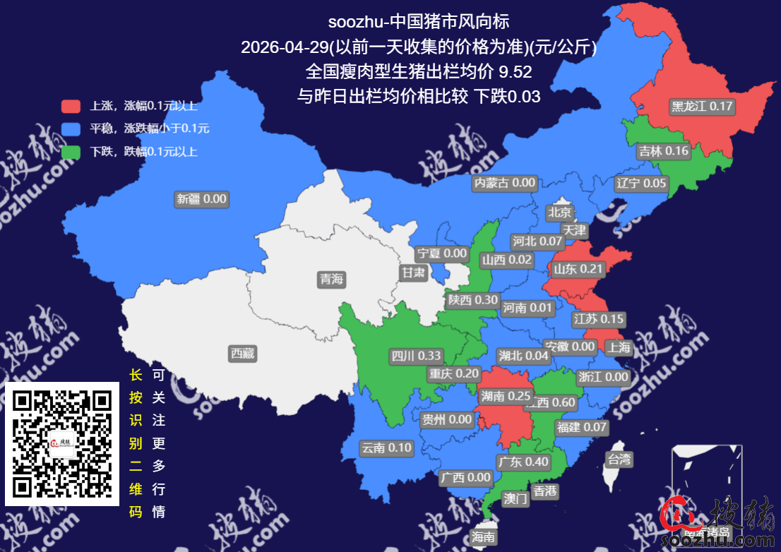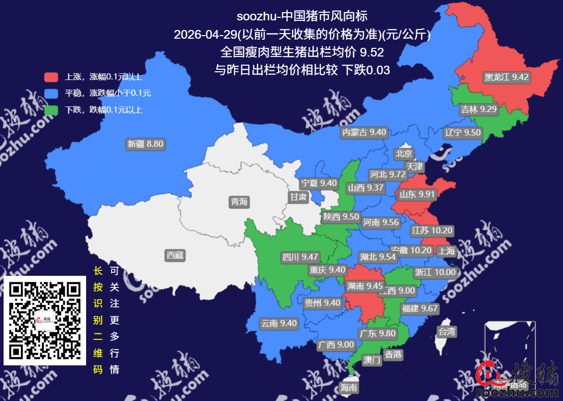 4月29日评:今日全国瘦肉型猪出栏均价9.52元/公斤