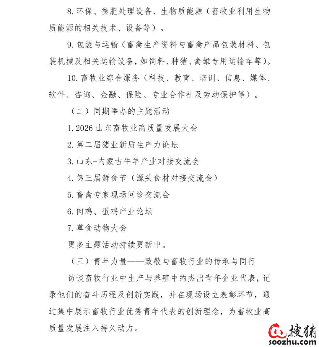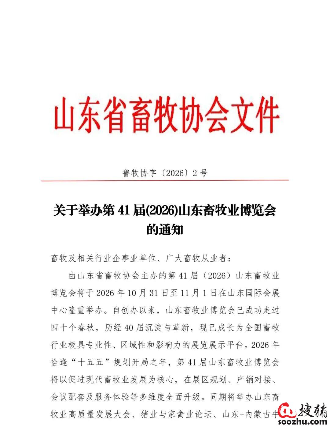 关于举办第41届(2026)山东畜牧业博览会的通知距离开幕时间:距开幕227天关注:105附件:回执单.doc(70.2KB)A+A-主题方向:助理畜牧业新质生产力发展会议时间:2026年10月29日 - 2026年10月30日举办天数:2天会议地点:山东省 - 济南市 - 山东国际会展中心(济南市槐荫区日照路1号))主 办 方:山东省畜牧协会 厦门市凤凰创意会展集团有限公司承 办 方:济南富山会展服务有限公司协办单位:诚招中...发 布 者:周月杰会议内容日程安排(审核编辑: zhou)