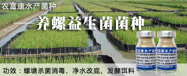 农富康水产菌种主要成分是枯草芽孢杆.菌、硝化细.菌、乳酸菌、光合细.菌等多种益生菌,使用于水稻田螺共生模式、鱼螺共生模式、纯石螺养殖塘,可以代替生石灰或漂白粉杀菌消毒,有效预防细.菌性病害;益生菌可以分解塘里多余有机物,起到净化水质作用,增加水中溶氧量;稳定PH值保持在7-8适宜螺生长。 产品咨询:187_0364_1667(微信同此号)